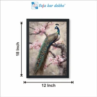 • A Peacock On Tree With Pink Flowers High Quality Weather Resistant HD Wall Frame | 18 x 12 inch |