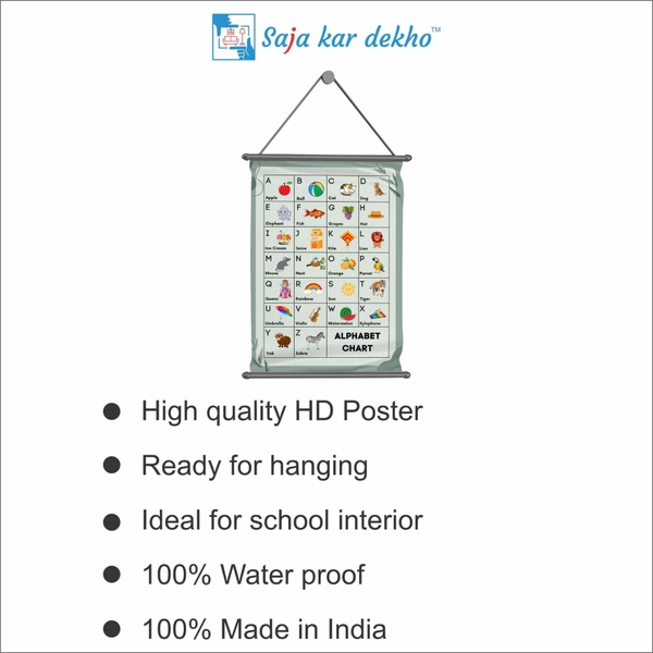 ALPHABET Wall Handing Poster For Kids | ALPHABET With Picture High Quality Weather Resistant HD Wall Poster | 30 x 48 inch |