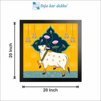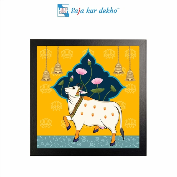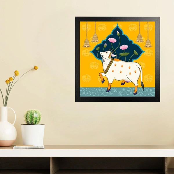 • Beautiful Cow, Lotus, Four Bell With Yellow Background High Quality Weather Resistant HD Wall Frame | 20 x 20 inch |