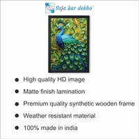 • Beautiful Peacock With Green And Yellow Leaves Background High Quality Weather Resistant HD Wall Frame | 18 x 12 inch |