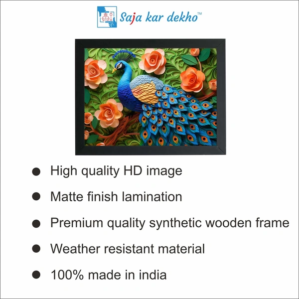 • EASY TO CLEAN :- Beautiful Peacock With Light Orange Flower Wall Picture is easy to clean and maintain. It is also water splash proof and you can dust the dirt off it by just using a soft cloth.