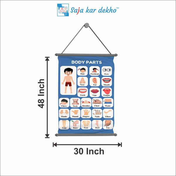 BODY PARTS Wall Handing Poster For Kids | BODY PARTS With Picture High Quality Weather Resistant HD Wall Poster | 30 x 48 inch |