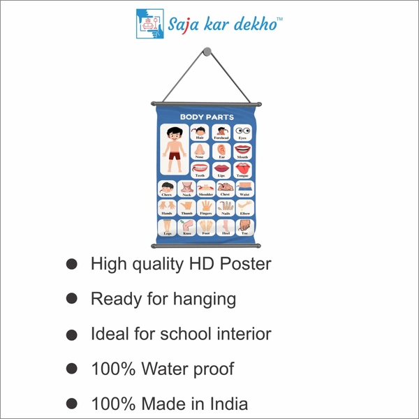 • BODY PARTS Wall Handing Poster For Kids | BODY PARTS With Picture High Quality Weather Resistant HD Wall Poster | 30 x 48 inch |