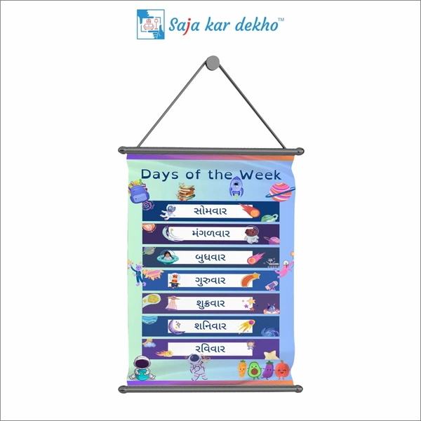 • EASY TO CLEAN: - DAY OF THE WEEK (અઠવાડીયું) Wall Poster is easy to clean and maintain. It is also water splash proof and you can dust the dirt off it by just using a soft cloth.