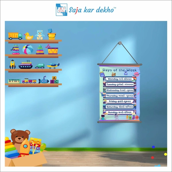 DAY OF THE WEEK Wall Handing Poster For Kids | DAYS With Picture High Quality Weather Resistant HD Wall Poster | 30 x 48 inch |