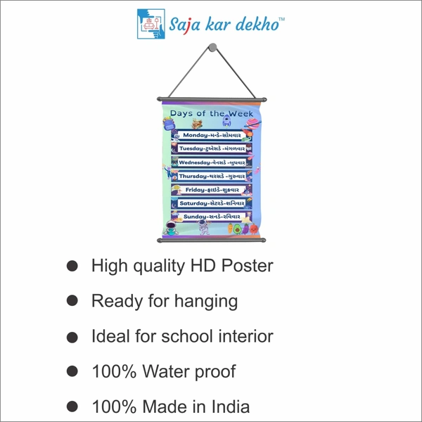 • EASY TO CLEAN: - DAY OF THE WEEK Wall Poster is easy to clean and maintain. It is also water splash proof and you can dust the dirt off it by just using a soft cloth.