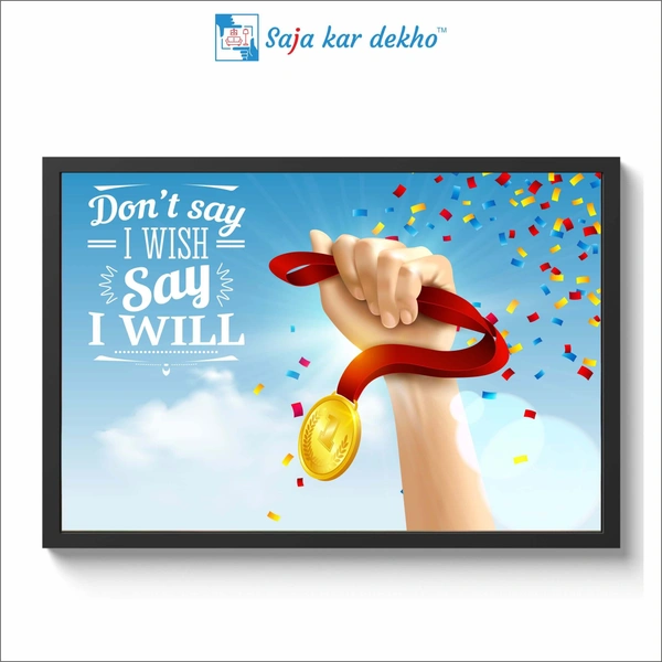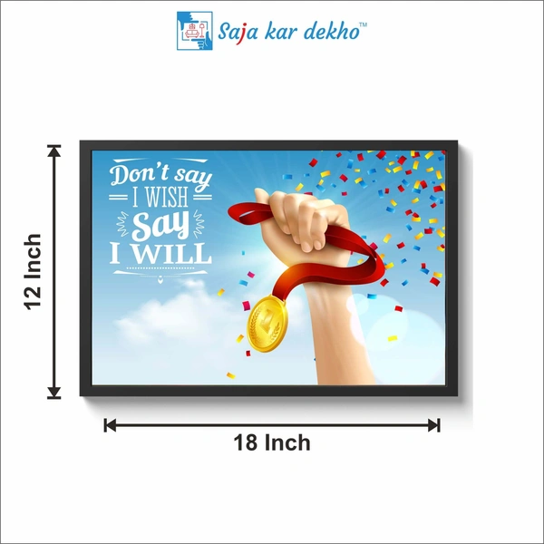 Don't Say I Wish Say I Will Motivation Quotes High Quality Weather Resistant HD Wall Frame | 18 x 12 inch |