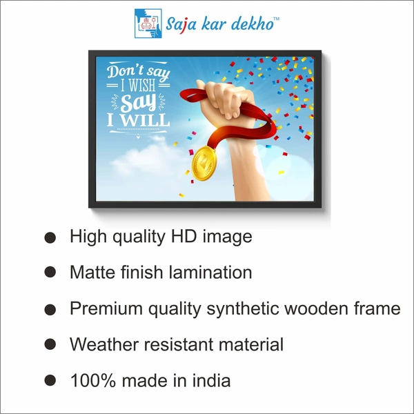 • Don't Say I Wish Say I Will Motivation Quotes High Quality Weather Resistant HD Wall Frame | 18 x 12 inch |