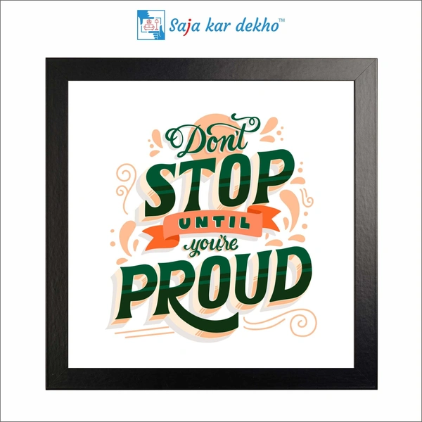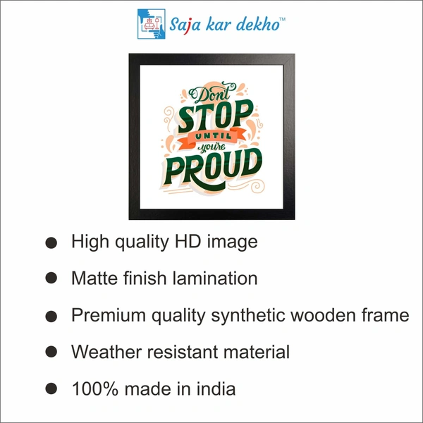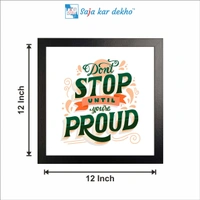 Don't Stop Until You're Proud Motivation Quotes High Quality Weather Resistant HD Wall Frame | 12 x 12 inch |