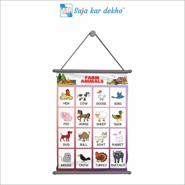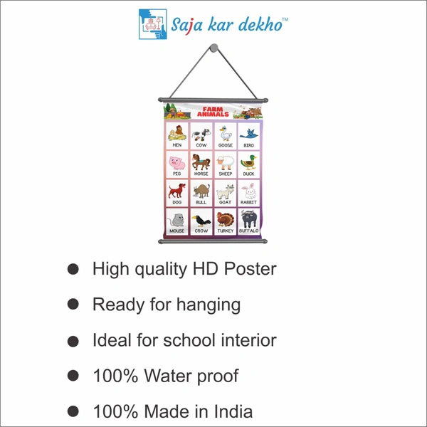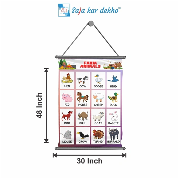 FARM ANIMALS Wall Handing Poster For Kids | FARM ANIMALS With Picture High Quality Weather Resistant HD Wall Poster | 30 x 48 inch |