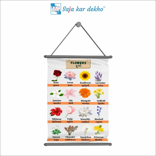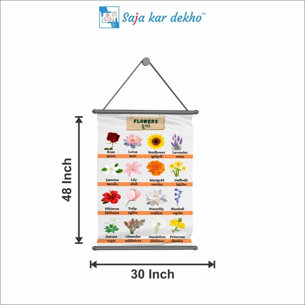 FLOWERS (ફૂલ) Wall Handing Poster For Kids | Famous FLOWERS Names With Picture High Quality Weather Resistant HD Wall Poster | 30 x 48 inch |