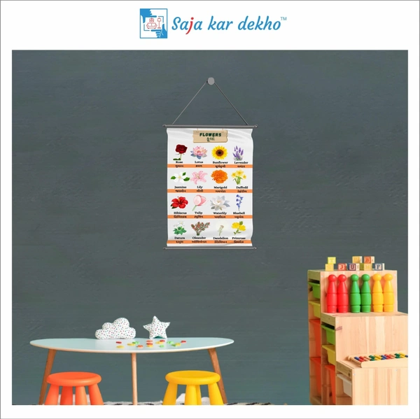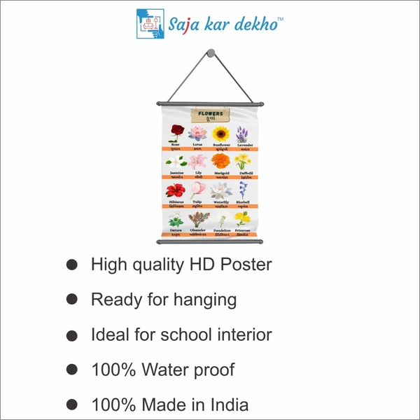• FLOWERS (ફૂલ) Wall Handing Poster For Kids | Famous FLOWERS Names With Picture High Quality Weather Resistant HD Wall Poster | 30 x 48 inch |