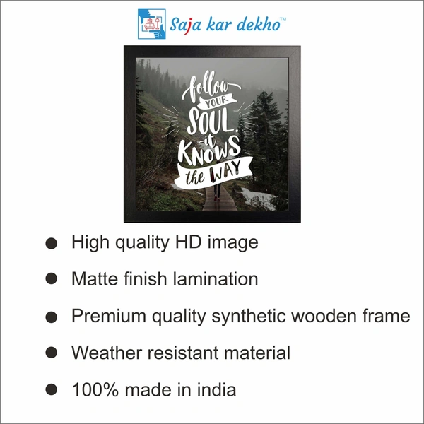• Follow Your Soul It Knows The Way Motivation Quotes High Quality Weather Resistant HD Wall Frame | 12 x 12 inch |