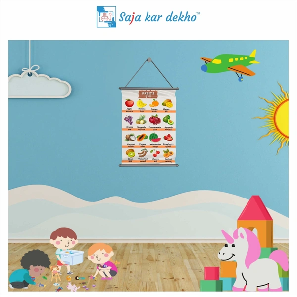 • FRUITS (ફળો) Wall Handing Poster For Kids | Famous FRUITS Names With Picture High Quality Weather Resistant HD Wall Poster | 30 x 48 inch |