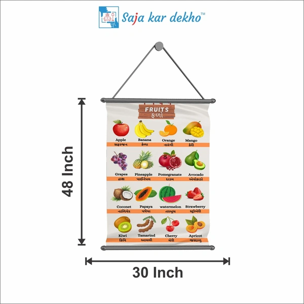 FRUITS (ફળો) Wall Handing Poster For Kids | Famous FRUITS Names With Picture High Quality Weather Resistant HD Wall Poster | 30 x 48 inch |