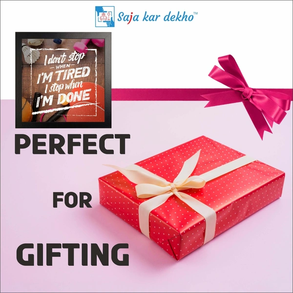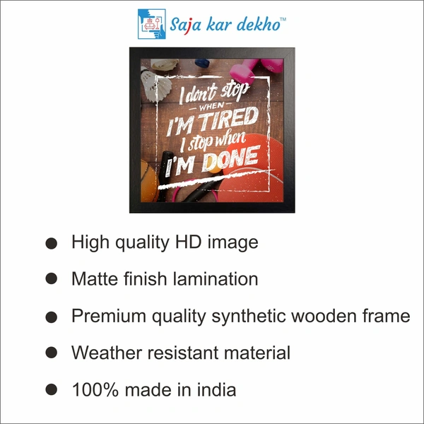 • I Don't Stop When I'M Tired I Stop When I'M Done Motivation Quotes High Quality Weather Resistant HD Wall Frame | 12 x 12 inch |