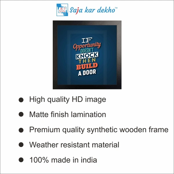 • If Opportunity Doesn't Knock Then Build A Door Motivation Quotes High Quality Weather Resistant HD Wall Frame | 12 x 12 inch |