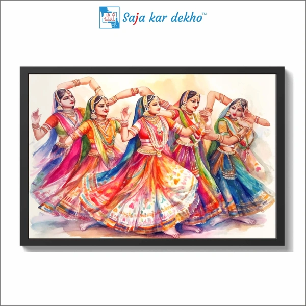 Indian Girls Dancing In Lehenga Choli Woman Lady Painting High Quality Weather Resistant HD Wall Frame | 18 x 12 inch |