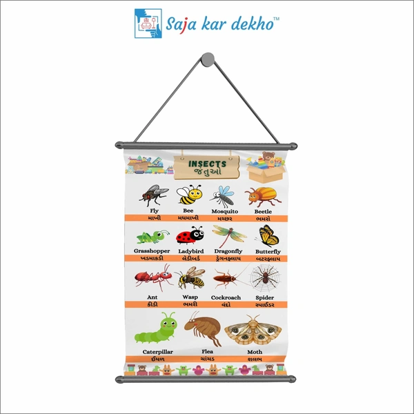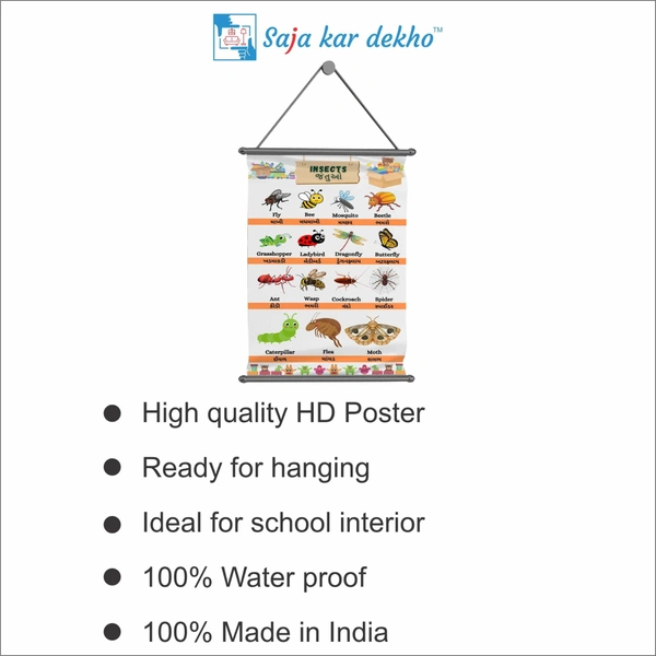 INSECTS (જંતુઓ) Wall Handing Poster For Kids | INSECTS With Picture High Quality Weather Resistant HD Wall Poster | 30 x 48 inch |