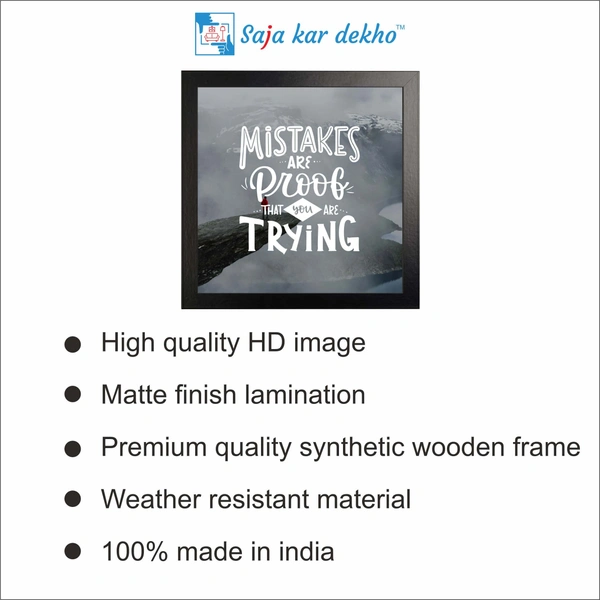 • Mistake Are Proof That You Are Tying Motivation Quotes High Quality Weather Resistant HD Wall Frame | 12 x 12 inch |