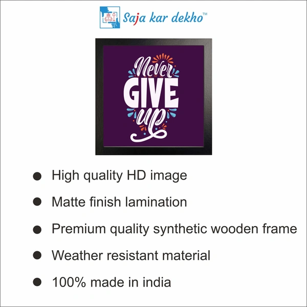 Never Give Up Motivation Quotes High Quality Weather Resistant HD Wall Frame | 12 x 12 inch |