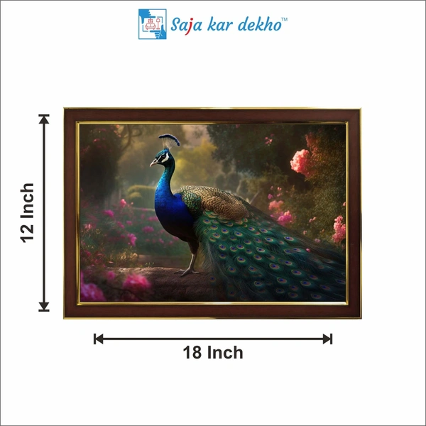 • Peacock In Garden High Quality Weather Resistant HD Wall Frame | 18 x 12 inch |