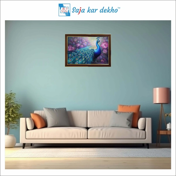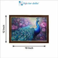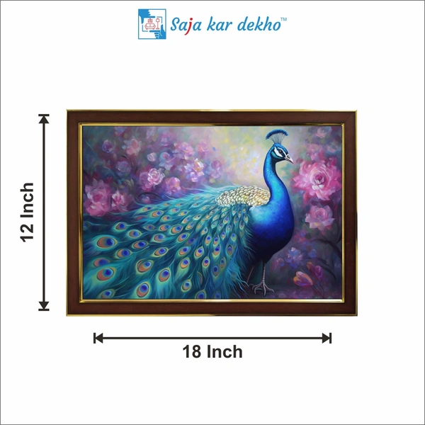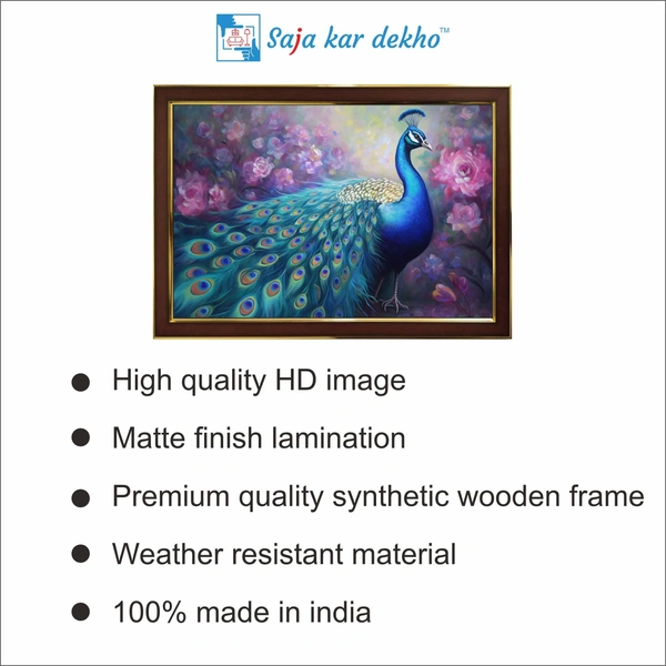 • Peacock With Beautiful Pink Flowers Background High Quality Weather Resistant HD Wall Frame | 18 x 12 inch |