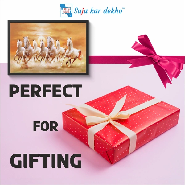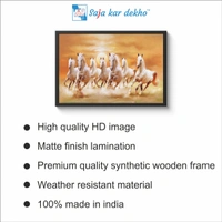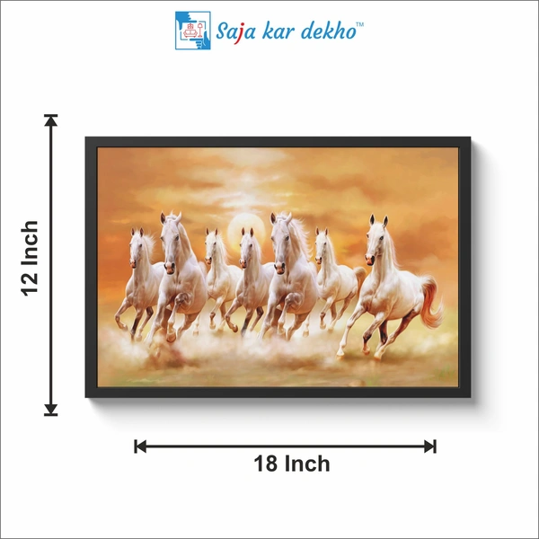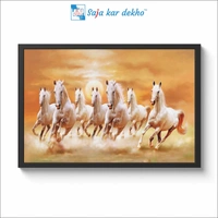 Seven Lucky Running Vastu Horses Art Framed Painting Orange theme (18 x 12 inch)