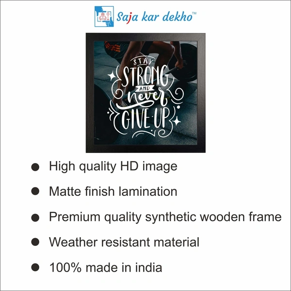 • Stay Strong And Never Give Up Motivation Quotes High Quality Weather Resistant HD Wall Frame | 12 x 12 inch |