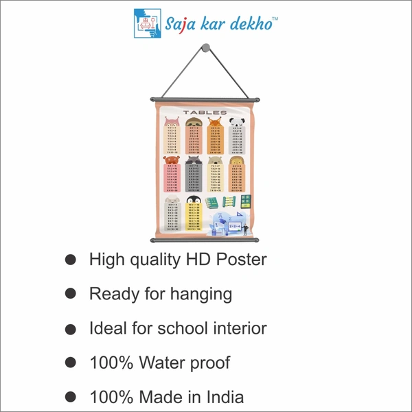 • TABLES Wall Handing Poster For Kids | TABLES With Picture High Quality Weather Resistant HD Wall Poster | 30 x 48 inch |