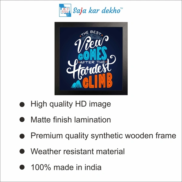 • The Best View Comes After The Hardest Climb Motivation Quotes High Quality Weather Resistant HD Wall Frame | 12 x 12 inch |