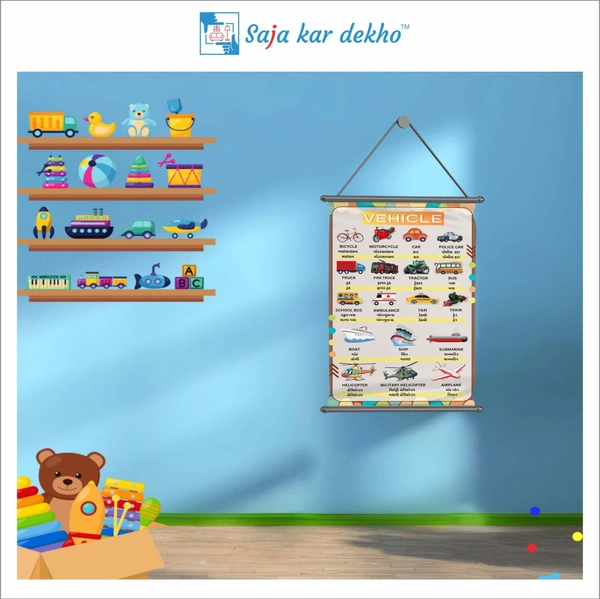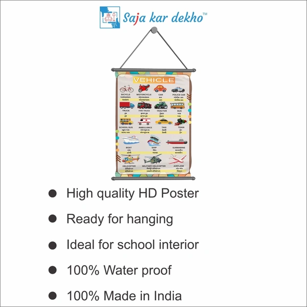 VEHICLE Wall Handing Poster For Kids | VEHICLE With Picture High Quality Weather Resistant HD Wall Poster | 30 x 48 inch |