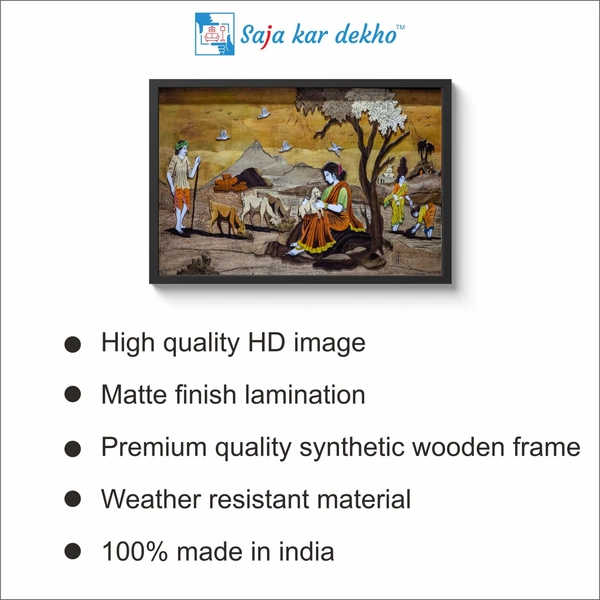 • MATERIAL :- High Quality full HD ECO Vinyl Print with water resistant thermal lamination , Self adhesive pasted on weather proof Foam sheet, Synthetic Wooden Frame.