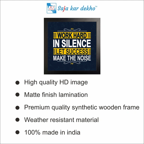 • Work Hard In Silence Left Success Make The Noise Motivation Quotes High Quality Weather Resistant HD Wall Frame | 12 x 12 inch |