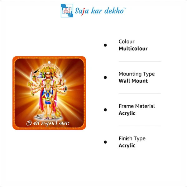 About this item - Shree Panchmukhi Hanuman ji wall picture for Vastu High Quality Picture Ideal for South, South-West and West facing Door For Divine Protection, God's Blessings and Positive Vibrations This product is ready to hang Weather Resistant Long lasting Acrylic material. Compact and convenient small size is perfect for on-the-go use or for those with limited space.